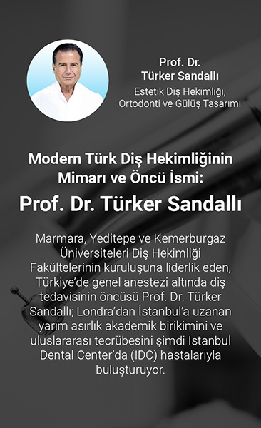 Marmara, Yeditepe ve Kemerburgaz Üniversiteleri Diş Hekimliği Fakültelerinin kuruluşuna liderlik eden, Türkiye’de genel anestezi altında diş tedavisinin öncüsü Prof. Dr. Türker Sandallı; Londra’dan İstanbul’a uzanan yarım asırlık akademik birikimini ve uluslararası tecrübesini şimdi İstanbul Dental Center’da (IDC) hastalarıyla buluşturuyor.
