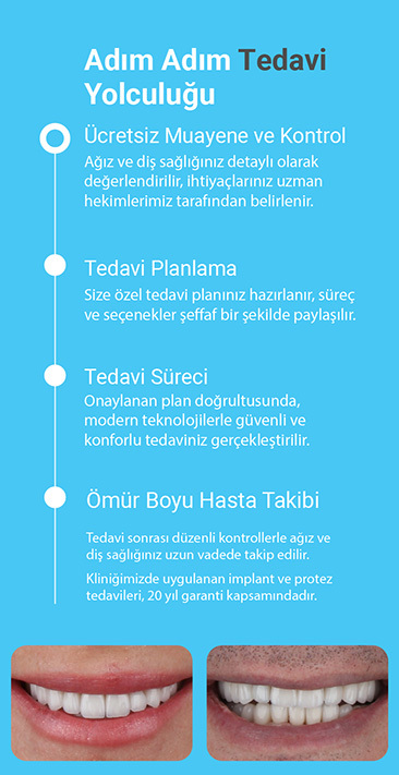 Klinğimizde uygulanan implant ve protez tedavileri, 20 yıl garanti kapsamındadır.